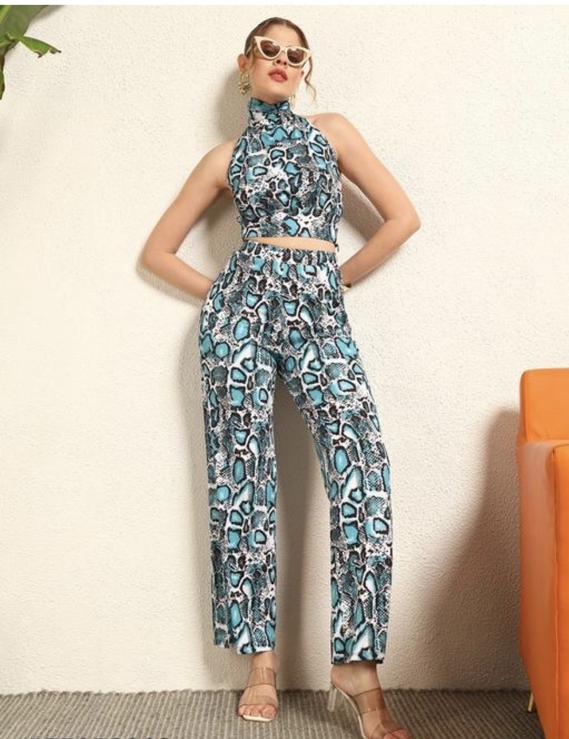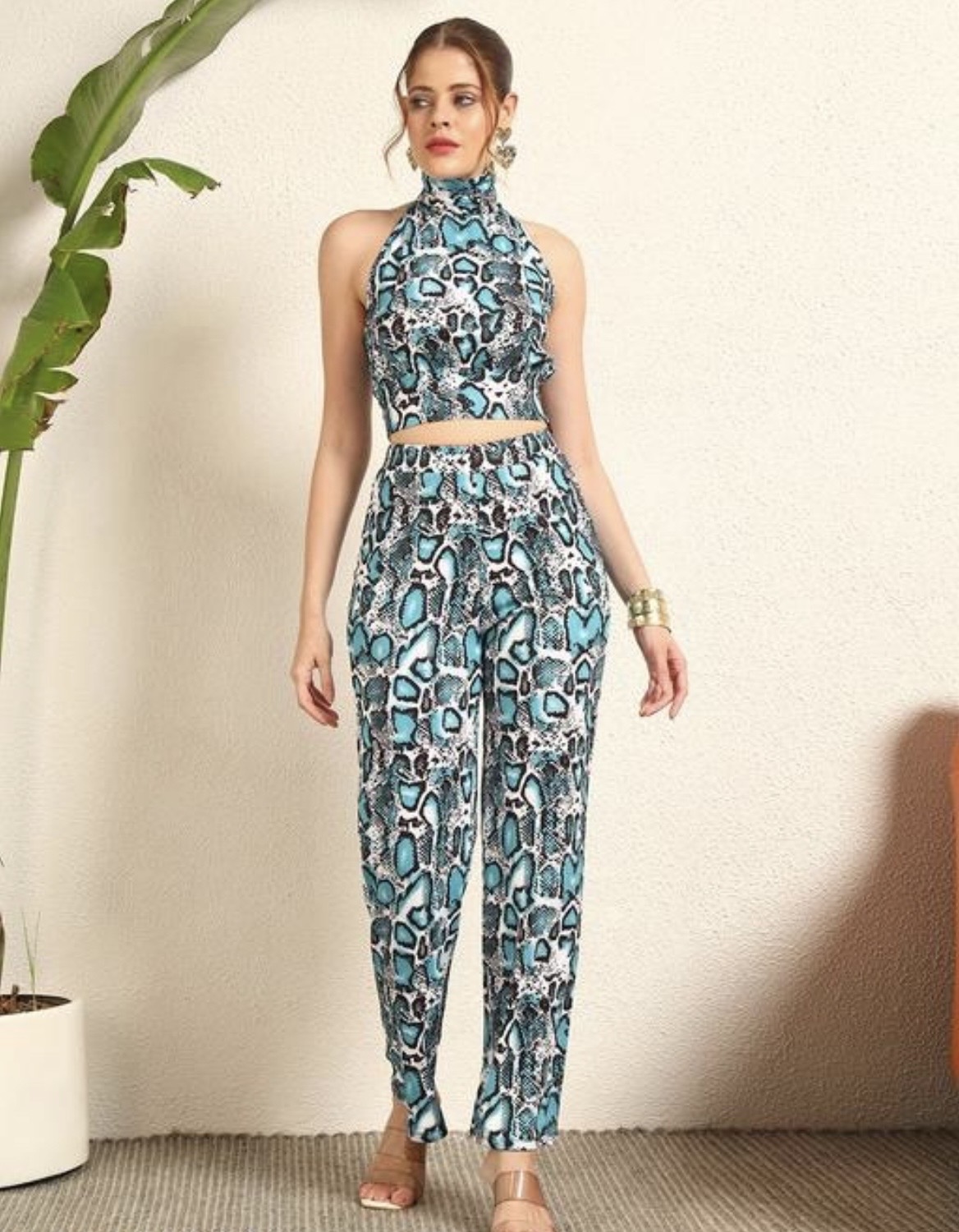 Step into vacation-ready style with this stunning Beach Honeymoon Dress for Women designed for modern elegance and comfort. This multicolour co-ord set features a trendy crop top paired with matching pants, making it a perfect choice for honeymoon trips, beach holidays, and stylish summer outings.